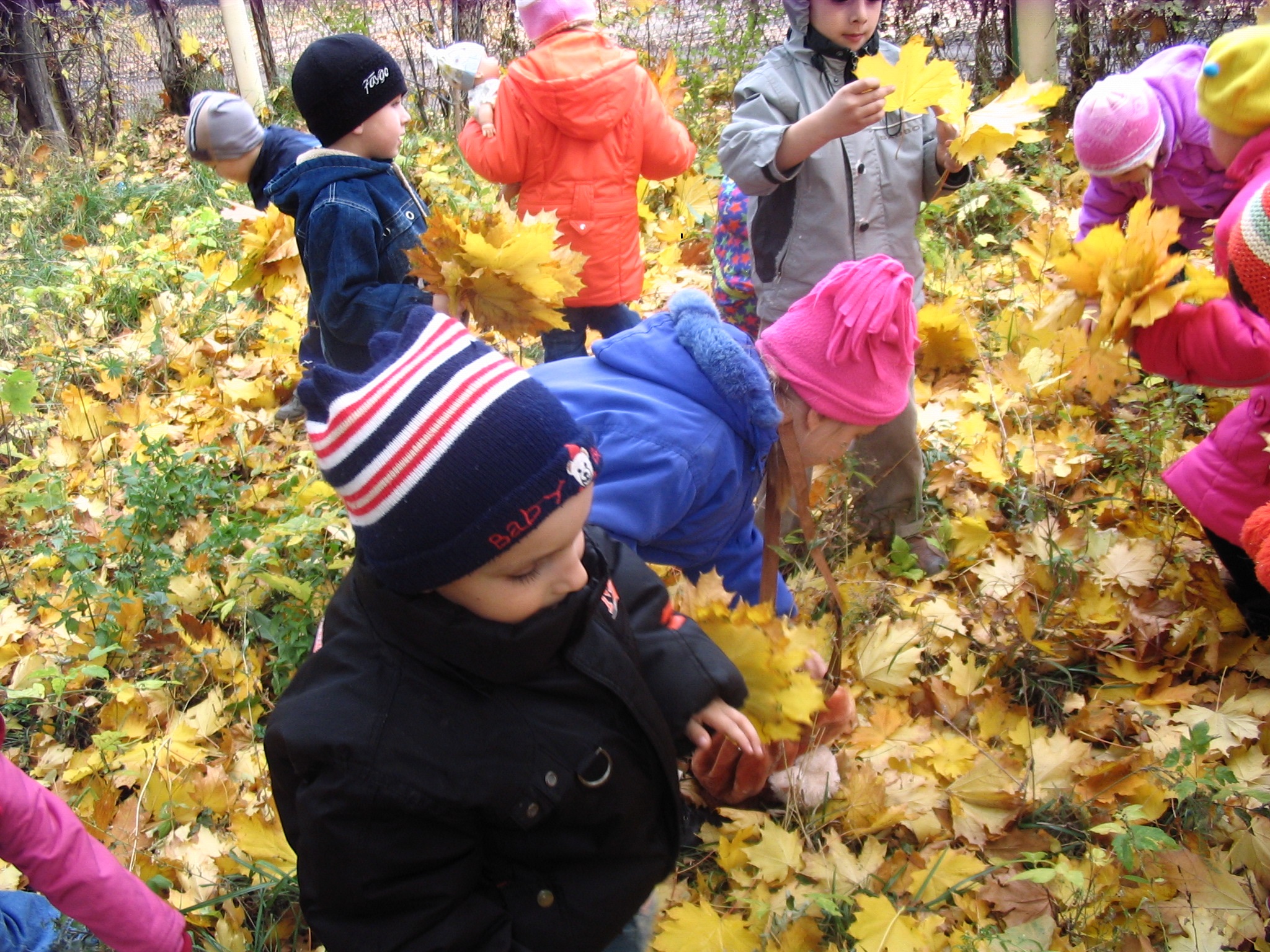Рассматривание осенних листьев