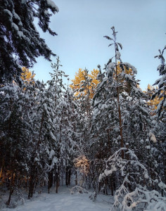 Залитые светом верхушки сосен