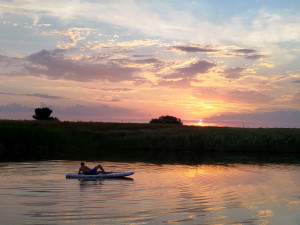 Розовый рассвет на реке
