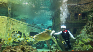 Кормление большой черепахи