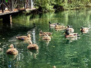 Прогулка уток вдоль берега
