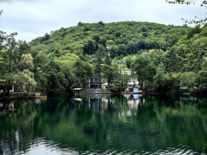 Голубое Озеро у подножия лесистого холма