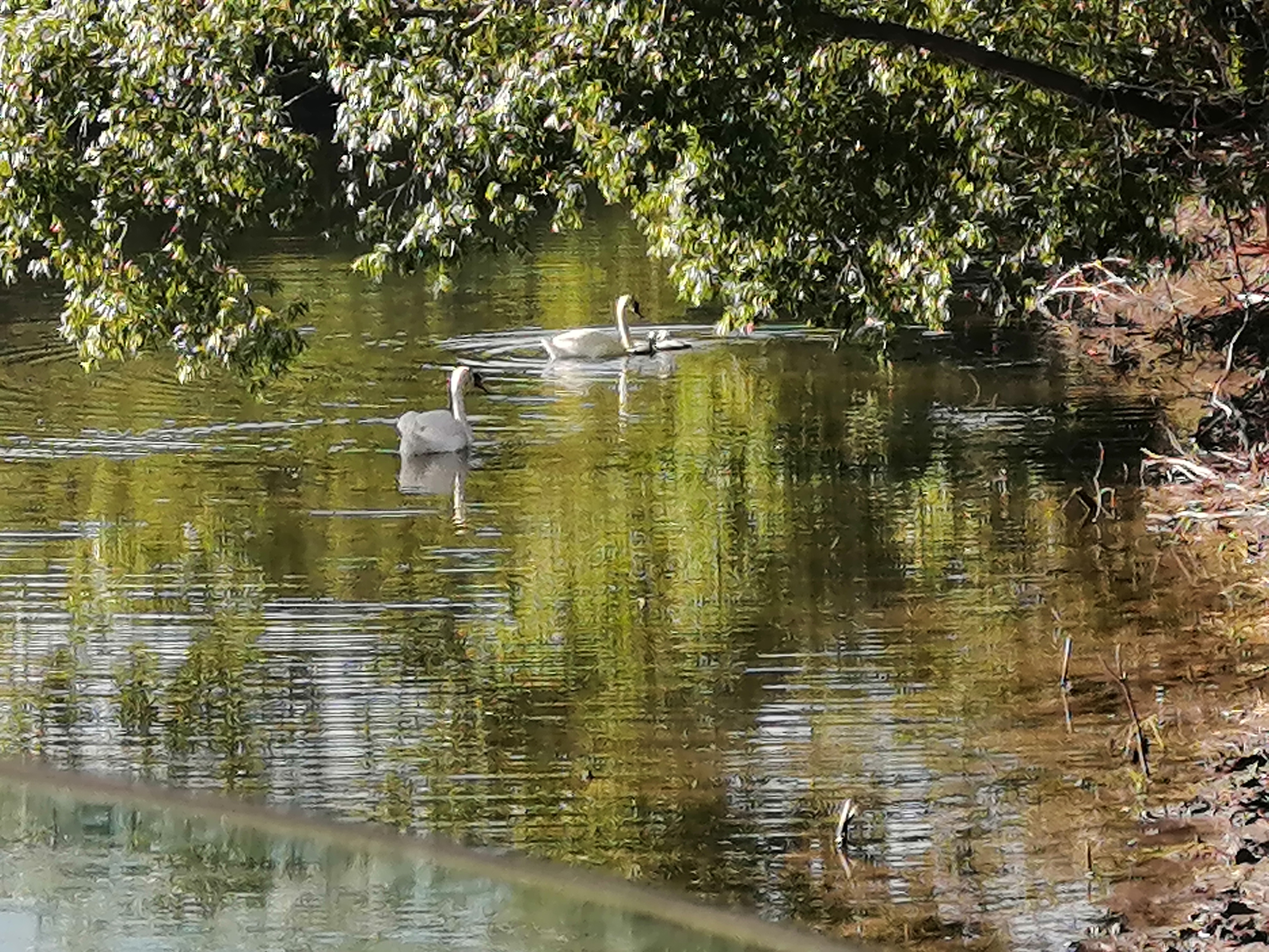 А белый лебедь на пруду