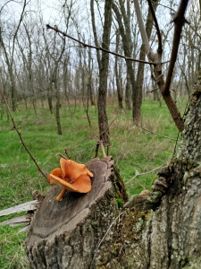 Гриб - красавец в сером лесу