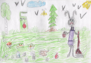 Грустный зайчик наводит порядок в лесу
