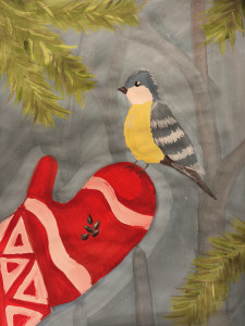 Маленький гость на зимней варежке