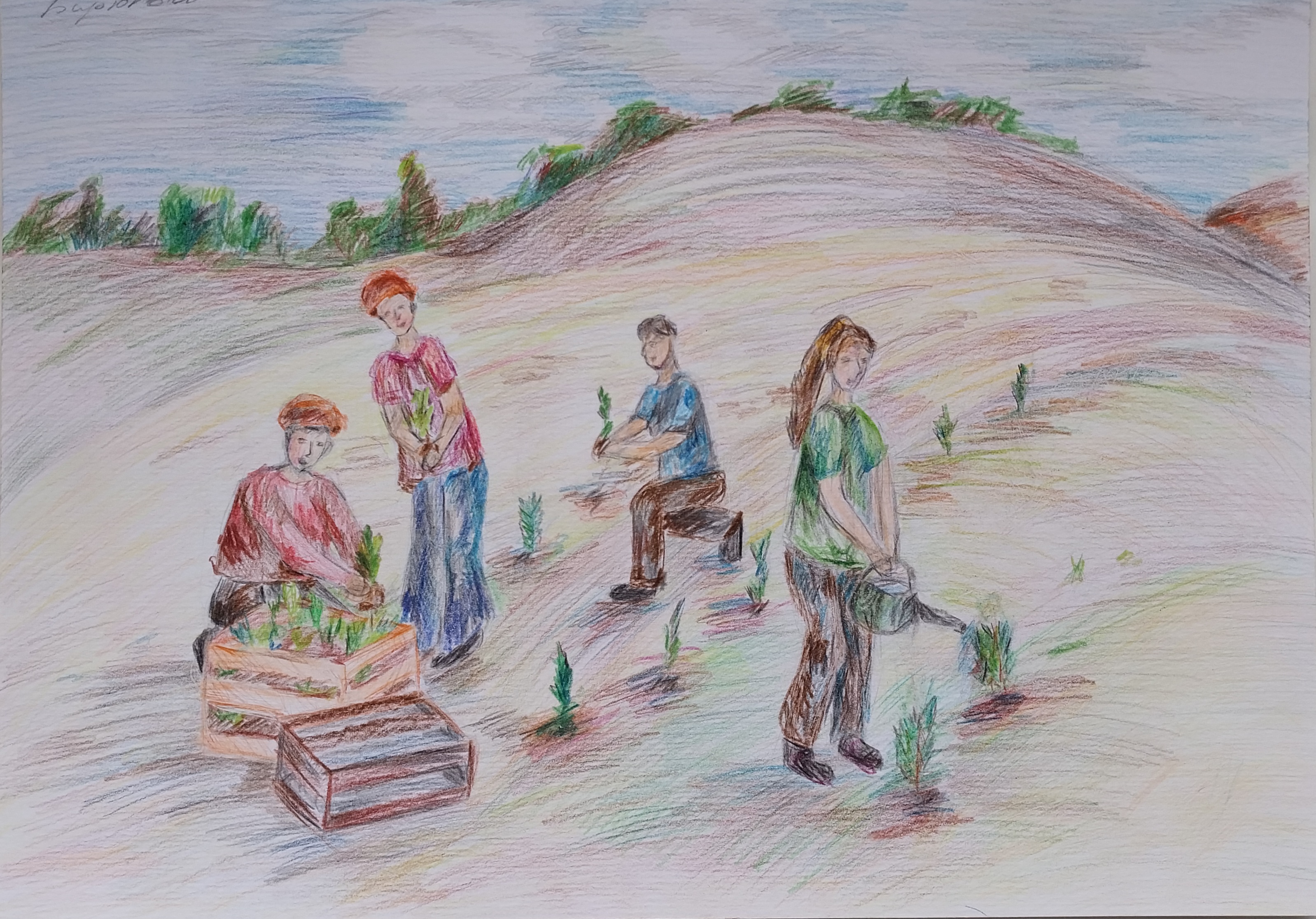 Высадка саженцев в степи