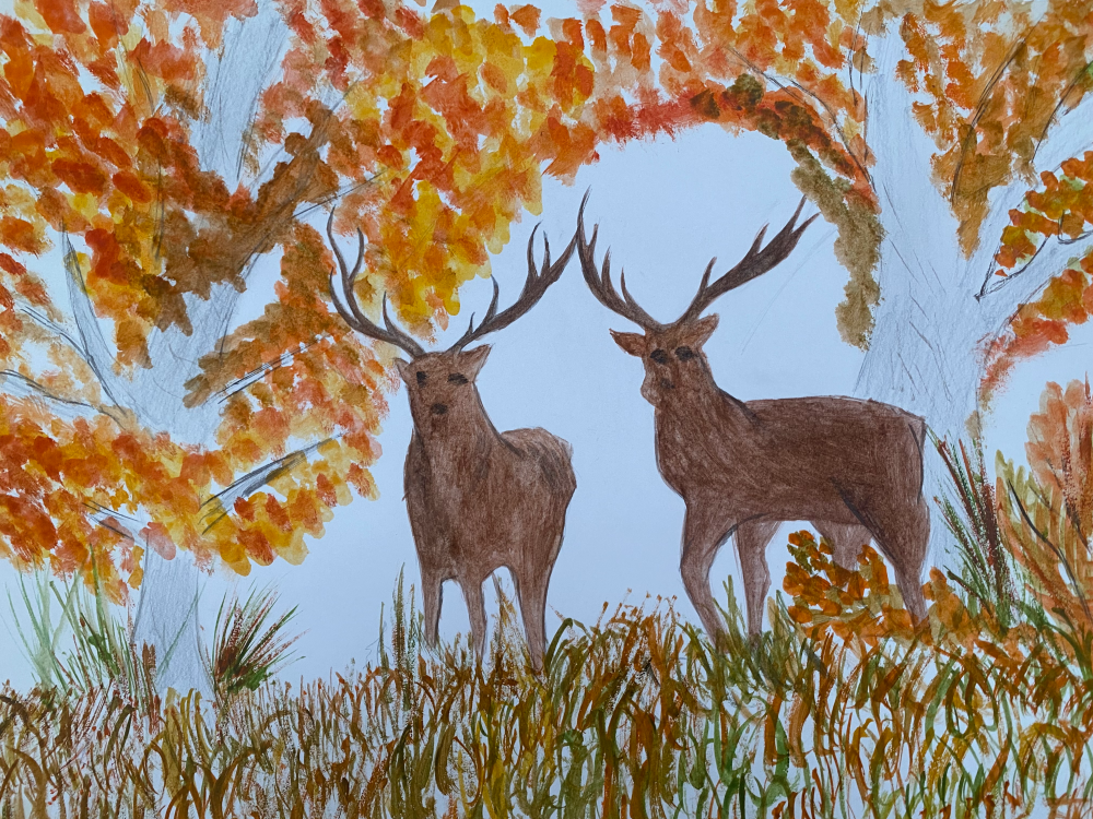 Олени в осеннем лесу