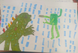 Мусорный монстр сражается с мусорным баком